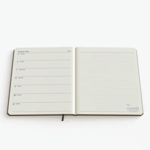 de KEMPEN L Weekly Notes EN planning hebdomadaire à gauche, page de notes à droite, relié avec papier chamois dans une couverture souple, signet, page de garde marbré, tranches de papier de couleur, coins biseautés sur format 17 x 22 cm.