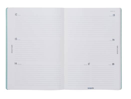 Brepols agenda Essential Motion 1 semaine par 2 pages anglais. Agenda relié avec papier blanc, dans une couverture souple en papier sur format 14,8 x 21 cm.