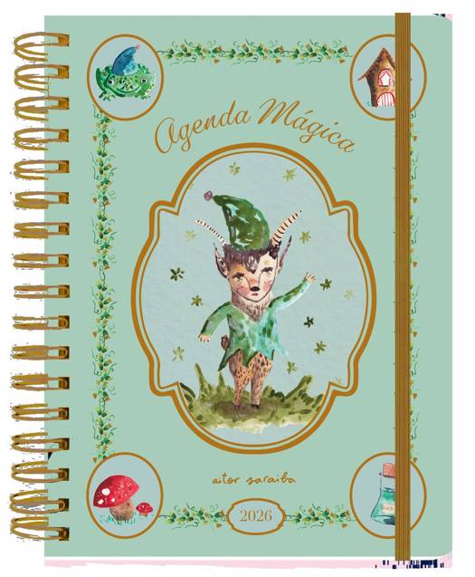 Una agenda que te enseña a proteger tu hogar y tus planes.Aitor Saraiba nos presenta para 2026 una nueva edición de su ya emblemática agenda mágica, esta vez dedicada a los espíritus del hogar: hadas, duendes, criaturas invisibles y sabias que, según la tradición ibérica, habitan entre nosotros y nos protegen? si sabemos invocar su presencia.Cada mes te descubrirá leyendas, rituales, plantas protectoras y costumbres ancestrales para atraer la energía positiva al hogar y reconectar con la naturaleza más cercana.Ilustrada con reproducciones de acuarelas originales del autor y una original ventana en la portada, esta agenda es una explosión de color, poesía visual y simbolismo, fiel al estilo delicado, mágico y profundamente personal de Saraiba.Además de su aclamada faceta artística, Aitor Saraiba es cada vez más reconocido por su labor como divulgador de tradiciones artesanas y culturales, tanto en España como en el extranjero.Con un diseño cuidado, práctico y bello, esta agenda es ideal para organizarse con calma, belleza y sentido.Una herramienta diaria y un objeto de inspiración, pensada para quienes creen que lo mágico también está en los pequeños gestos del día a día.Características: Formato: 16,8 x 22,8 cm. Formato interior 16,4 x 22,2 cm. 172 páginas. 4 páginas de adhesivos. Bolsillo doble. Goma de cierre. Pestañas plastificadas. Esquinas redondeadas. Tapa dura con troquelado. Wire-o.