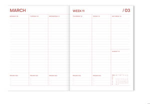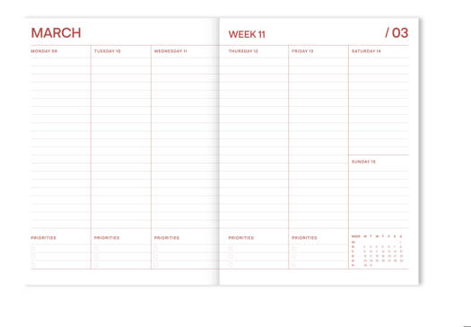 De nieuwe Fabrique agenda's 2025-2026 (18 maanden) geven instant good vibes. Het binnenwerk is strak vormgegeven en lekker overzichtelijk met voldoende ruimte om je dagen te vullen. De agenda loopt van 31 Juni 2025 t/m 3 Januari 2027.Ook handig: onderin is bij elke week extra ruimte vrijgelaten voor taken en notities. Dus geen gedoe meer met onleesbare krabbels maar duidelijke aantekeningen. En wat is er nou lekkerder dan met een mooie lege agenda nieuwe jaarplannen te maken? Laat 2025 maar beginnen, jij bent er klaar voor met een Fabrique agenda.+ Weekoverzichten + Maandoverzichten + Leeslintje + Creme kleurig papier + FSC Gecertificeerd + Ruimte voor notities en to do's + Looptijd: 31 Juni 2025 t/m 3 Januari 2027
