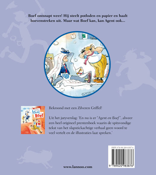 Uit het juryverslag: 'En nu is er Agent en Boef, alweer een heel origineel prentenboek waarin de spitsvondige tekst van het slapstickachtige verhaal geen woord te veel vertelt en de illustraties laat spreken.'