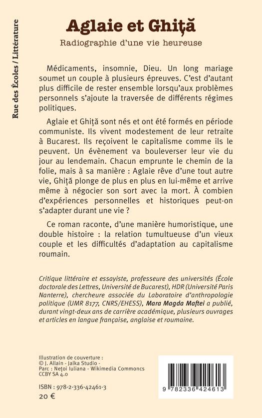 Médicaments, insomnie, Dieu. Un long mariage soumet un couple à plusieurs épreuves. C’est d’autant plus difficile de rester ensemble lorsqu’aux problèmes personnels s’ajoute la traversée de différents régimes politiques. Aglaie et Ghiță sont nés et ont été formés en période communiste. Ils vivent modestement de leur retraite à Bucarest. Ils reçoivent le capitalisme comme ils le peuvent. Un évènement va bouleverser leur vie du jour au lendemain. Chacun emprunte le chemin de la folie, mais à sa manière : Aglaie rêve d’une tout autre vie, Ghiță plonge de plus en plus en lui-même et arrive même à négocier son sort avec la mort. À combien d’expériences personnelles et historiques peut-on s’adapter durant une vie ? Ce roman raconte, d’une manière humoristique, une double histoire : la relation tumultueuse d’un vieux couple et les difficultés d’adaptation au capitalisme roumain.