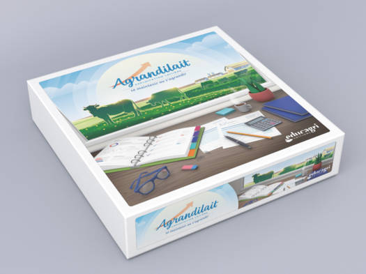 Agrandilait est une simulation ludopédagogique de gestion de l’agrandissement d’une exploitation laitière. Il a pour but de sensibiliser les (futurs) éleveurs aux enjeux liés à cette démarche en prenant en compte les modalités techniques, les conditions de travail, les aspects financiers, la main d‘œuvre et l’équilibre entre vie privée et vie professionnelle. Les joueurs devront faire preuve de stratégie pour agrandir leur troupeau laitier sans dégrader leurs conditions de travail et maintenir leur revenu.