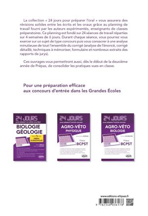 Les ouvrages de la collection 24 jours permettent d’optimiser son travail durant les 2 années de classes préparatoires aux Grandes Écoles. Grâce au planning de travail fourni par les auteurs expérimentés, enseignants de classes préparatoire, cet ouvrage assurera aux étudiants en filière BCPST des révisions solides en mathématiques entre les écrits et les oraux des concours Agro-Véto.