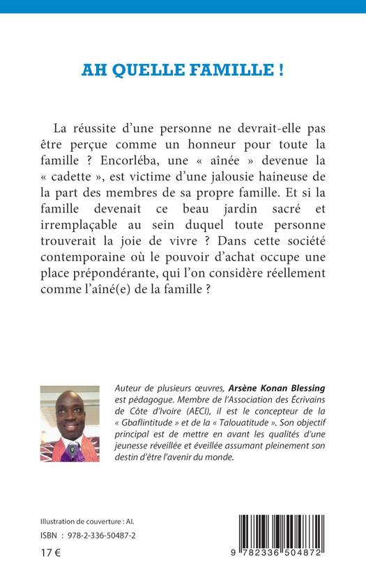 La réussite d'une personne ne devrait-elle pas être perçue comme un honneur pour toute la famille ? Encorléba, une aînée devenue la cadette, est victime d'une jalousie haineuse de la part des membres de sa propre famille. Et si la famille devenait ce beau jardin sacré et irremplaçable au sein duquel toute personne trouverait la joie de vivre ? Dans cette société contemporaine où le pouvoir d'achat occupe une place prépondérante, qui l'on considère réellement comme l'aîné(e) de la famille ?