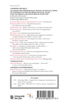 Premier écrivain africain francophone, Ahmadou Kourouma est l’auteur d’une oeuvre romanesque qui a marqué et bouleversé la littérature africaine francophone et le champ éditorial français. Au croisement des langues, des cultures, des histoires (notamment celles de la colonisation et de la décolonisation en Afrique), oscillant entre comique et tragique, ses romans constituent, depuis Les Soleils des indépendances paru en 1968, la meilleure approche du Divers…