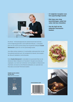 Voor Aifryer all day creëerde ze 77 overheerlijke unieke gerechten met de haar gekende speciale touch. Van voorgerecht tot dessert, alle recepten zijn steevast makkelijk en snel te bereiden.