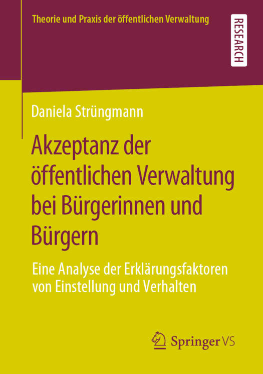 Daniela Strüngmann entwickelt ein integratives Legitimitätsmodell, mit dem sie die Akzeptanz öffentlicher Verwaltung bei den Bürgern erklärt. Anhand eines Mehrmethodenansatzes gewinnt sie aus der Empirie eine Typologie von Akzeptanztypen und untersucht Einflussfaktoren wie bspw. Behördenkontakte, Einstellungen im sozialen Umfeld oder Medienberichte sowie ihr Zusammenspiel. Es zeigt sich, dass die Bewertung der Verwaltung nicht auf ihr negatives Image verkürzt werden kann. Überdies wird deutlich, dass die Einstellungen zur Verwaltung auch Wahlentscheidungen und politische Einstellungen beeinflussen können.