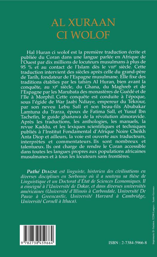 Première traduction écrite et publiée du Coran en wolof, langue parlée en Afrique de l'Ouest par dix millions de locuteurs en majorité musulmans et au contact de l'Islam depuis le VIIIème siècle.
