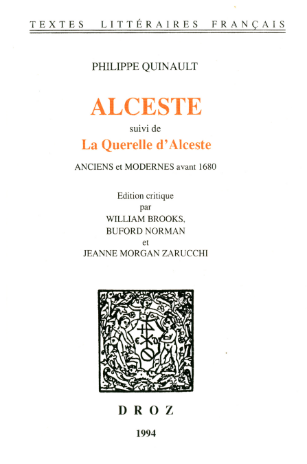 Louis XIV apprécia beaucoup Alceste, la nouvelle tragédie de Quinault, mise en musique par Lully, représentée en janvier 1674, mais le public parisien la bouda. En juillet parut une Critique d’Alceste, due à la plume de Charles Perrault, favorable à Lully et à son librettiste : il s’agissait de défendre la valeur des vers et la réécriture d’une tragédie antique. Racine prit le contre-pied dans sa Préface d’Iphigénie. Deux textes de Charles et Pierre Perrault complètent cette Querelle d’Alceste qui préfigure la Querelle des Anciens et des Modernes des années 1680 et laisse entrevoir le chemin que va suivre la nouvelle forme théâtrale que représente la tragédie lyrique.