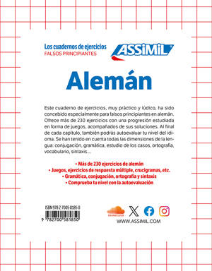 Este cuaderno de ejercicios, muy práctico y lúdico, ha sido concebido especialmente para falsos principiantes en alemán. Ofrece más de 230 ejercicios con una progresión estudiada en forma de juegos, acompañados de sus soluciones. Al final de cada capítulo, también podrás autoevaluar tu nivel del idioma. Se han tenido en cuenta todas las dimensiones de la lengua: conjugación, gramática, estudio de los casos, ortografía, vocabulario, sintaxis...