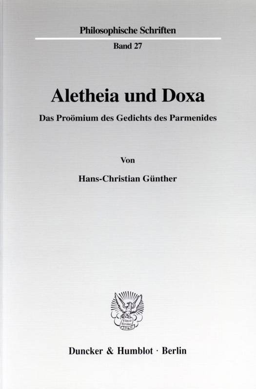 Die Abhandlung folgt im wesentlichen dem Gang des griechischen Textes, der vollständig übersetzt und abschnittsweise interpretiert wird. Es erweist sich dabei, daß das Proömium in nuce die philosophischen Probleme des gesamten Gedichts vorwegnimmt. Aus einer Analyse des Proömiums wird so Parmenides' Konzept von Denken, Wahrheit und Sein entwickelt, wie sie für die griechische Philosophie und mithin das abendländische Denken überhaupt bestimmend geworden ist.