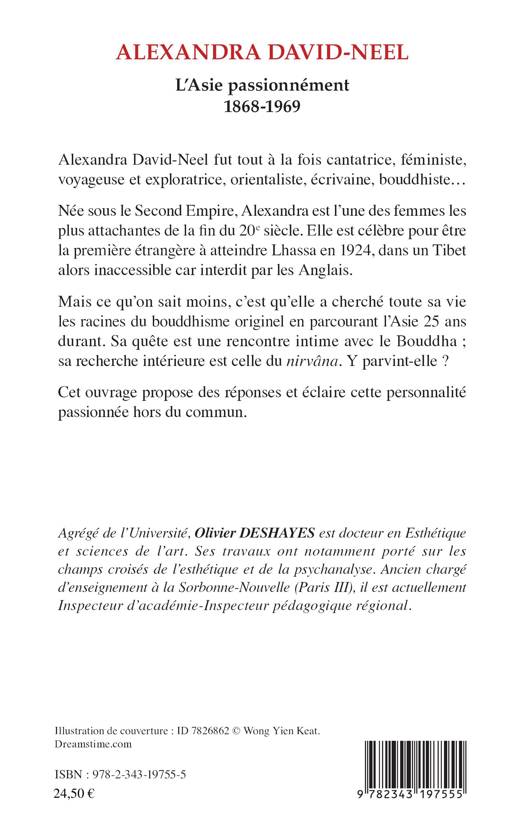 Alexandra David-Neel fut tout à la fois cantatrice, féministe, voyageuse et exploratrice, orientaliste, écrivaine, bouddhiste. Elle est célèbre pour être la première étrangère à atteindre Lhassa en 1924, dans un Tibet alors inaccessible car interdit par les Anglais. Mais ce qu'on sait moins, c'est qu'elle a cherché toute sa vie les racines du bouddhisme originel en parcourant l'Asie, 25 ans durant. Sa quête est une rencontre intime avec le Bouddha ; sa recherche intérieure est celle du nirvâna. Y parvint-elle ? Cet ouvrage propose des réponses et éclaire cette personnalité passionnée et hors du commun.