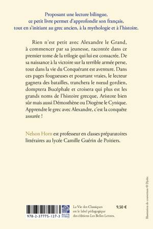 Rien n’est petit avec Alexandre le Grand, à commencer par sa jeunesse, racontée dans ce premier tome de la trilogie qui lui est consacrée. De sa naissance à la victoire sur la terrible armée perse, tout dans la vie du Conquérant est aventure. Dans ces pages fougueuses et pourtant vraies, le lecteur gagnera des batailles, tranchera le noeud gordien, domptera Bucéphale et croisera qui plus est les grands noms de l’histoire grecque, Aristote bien sûr mais aussi Démosthène ou Diogène le Cynique. Apprendre le grec avec Alexandre, c’est la conquête assurée !