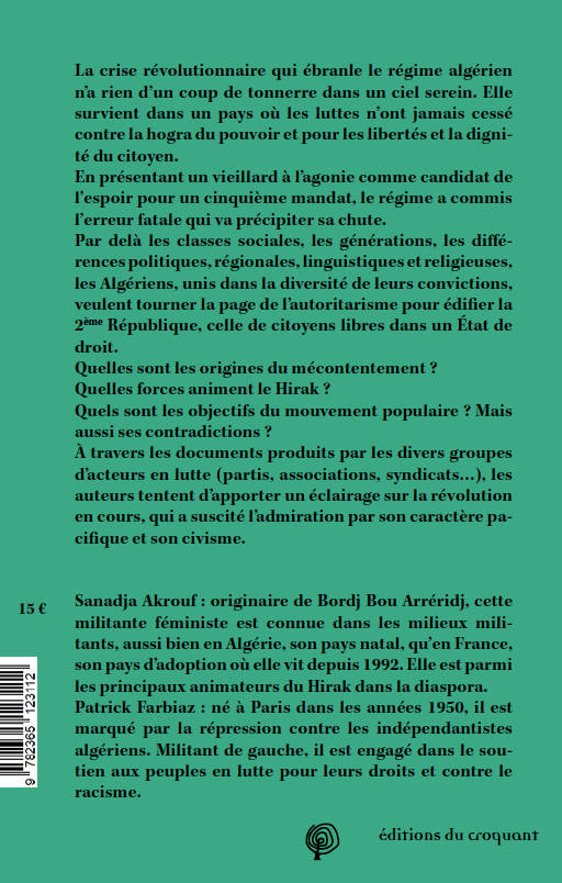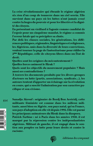 Ce livre est né d'une rencontre dans le Paris métissé du 20e arrondissement de deux militants qui, à travers leurs expériences et leurs combats souvent communs, ont ressenti comme une nécessité de faire ce livre. Ce n'était pas évident, ni pour la Franco-Algérienne combattante, mère célibataire, travaillant la semaine, militant le soir et le week-end, allant en Algérie chaque mois pour passer quelques jours au sein du Hirak. C'était plus facile matériellement pour le retraité français mais qui ressentait le poids du regard critique des Algériens sur l'écriture de leur histoire par un non-historien étranger – et, qui plus est, issu de la puissance coloniale. Si nous avons décidé de publier ce livre en France et en Algérie, c'est aussi pour briser cette frontière insidieuse hérissée par deux nationalismes qui empêche la coopération entre nos deux peuples liés de manière indéfectible par l'histoire. C'est surtout pour montrer que nous sommes, tous les deux, citoyen-ne-s du monde.