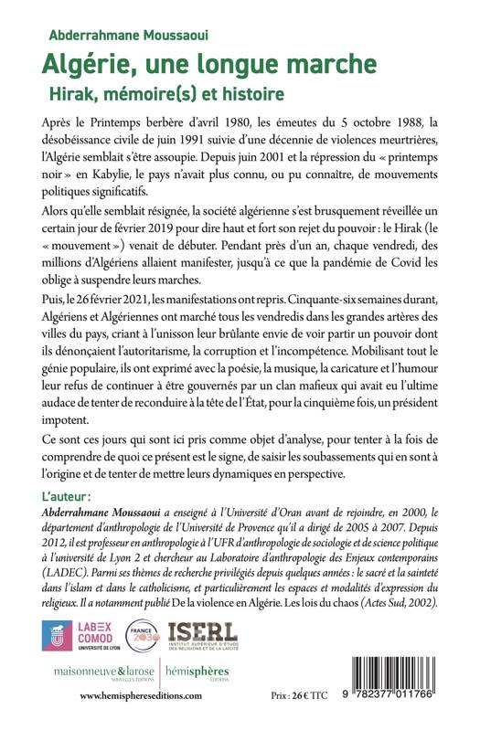 Après le Printemps berbère d’avril 1980, les émeutes du 5 octobre 1988, la désobéissance civile de juin 1991 suivie d’une décennie de violence meurtrière, l’Algérie semblait s’être assoupie. Depuis juin 2001 et la répression du « printemps noir » en Kabylie, le pays n’avait plus connu, ou pu connaitre, de mouvements politiques significatifs. Alors qu’elle semblait résignée devant l’impudicité et l’outrecuidance d’un pouvoir qui avait cru avoir définitivement assujetti le peuple, la société algérienne s’est brusquement réveillée certain jour de février 2019 pour dire, avec l’art et la manière, son rejet catégorique d’un régime qui avait trop tiré sur la corde. Pendant près d’un an, chaque vendredi, des milliers, des millions d’Algériens ont manifesté pour dire haut et fort leur rejet du pouvoir, jusqu’à ce que la pandémie de Covid ne les oblige à suspendre leurs marches. Puis, le 26 février 2021, les manifestations ont repris. Cinquante-six semaines durant, Algériens et Algériennes ont marché tous les vendredis dans les grandes artères des villes du pays, criant à l’unisson leur brûlante envie de voir partir un pouvoir dont ils dénonçaient l’autoritarisme, la corruption et l’incompétence. Mobilisant tout le génie populaire, ils ont exprimé avec la poésie, la musique, la caricature et l’humour leur refus de continuer à être gouvernés par un clan mafieux qui a eu l’ultime audace de tenter de reconduire à la tête de l’Etat, pour la cinquième fois, un président impotent et aphone. Ce sont ces jours qui sont ici pris comme objet d’analyse, pour tenter de comprendre à la fois de quoi ce présent est le signe, saisir les soubassements qui en sont à l’origine et tenter de mettre leurs dynamiques en perspective.