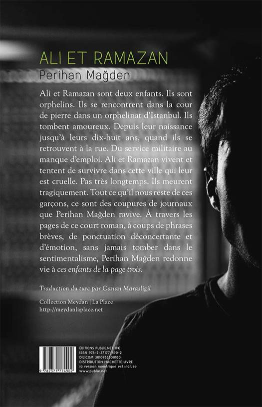 Ali et Ramazan sont deux enfants. Ils sont orphelins. Ils se rencontrent dans la cour de pierre dans un orphelinat d’Istanbul. Ils tombent amoureux. Depuis leur naissance jusqu’à leurs dix-huit ans, quand ils se retrouvent à la rue. Du service militaire au manque d’emploi. Ali et Ramazan vivent et tentent de survivre dans cette ville qui leur est cruelle. Pas très longtemps. Ils meurent tragiquement. Tout ce qu’il nous reste de ces garçons, ce sont des coupures de journaux que Perihan Ma den ravive. À travers les pages de ce court roman, à coups de phrases brèves, de ponctuation déconcertante et d’émotion, sans jamais tomber dans le sentimentalisme, Ma den redonne vie à ces enfants de la page trois.