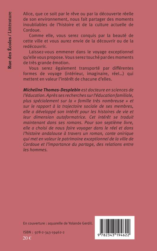 À l'occasion de son voyage à Cordoue, Alice traverse la ville, découvre son patrimoine et les hommes qui en ont hérité. Elle revit alors les moments extraordinaires de l'histoire d'Al-Andalus, région mythique, et se promenant entre rêve et réalité, rebrousse chemin dans l'histoire, à la recherche de ce qu'elle raconte sur chacun.