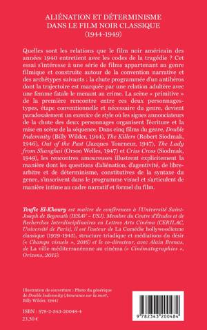 Quelles sont les relations que le film noir américain des années 1940 entretient avec les codes de la tragédie ? Cet essai s'intéresse à une série de films construite autour de la convention narrative et des archétypes suivants : la chute programmée d'un antihéros dont la trajectoire est marquée par une relation adultère avec une femme fatale le menant au crime.