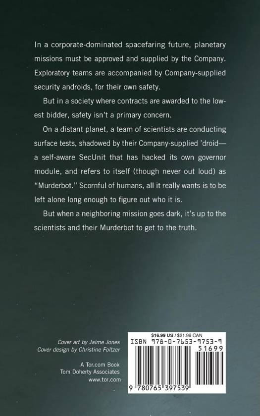 On a distant planet, a team of scientists are conducting surface tests, shadowed by their Company-supplied 'droid--a self-aware SecUnit that has hacked its own governor module, and refers to itself (though never out loud) as "Murderbot." Scornful of humans, all it really wants is to be left alone long enough to figure out who it is.