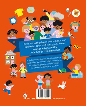 Een kind verandert nooit meer zo snel en veel als in de eerste vijf jaar. Tegen de tijd dat de zesde verjaardag eraan komt, hebben kleuters al enorm veel eerste indrukken, ervaringen en uitdagingen overwonnen met de aangeboren moed en lol die hun zo eigen is. En dan is de kleutertijd voorbij! 'Alles wat je moet weten voor je 6 wordt!' is een speels, interactief boek vol tips, verhaaltjes, adviezen, uitdagingen en aanwijsplaten. Echt alles komt voorbij in dit dikke prentenboek, van getallen tot kleuren, van families tot hobby's en van spelletjes tot gevoelens. Dit boek is een leuk cadeau voor kinderen van vier of vijf jaar oud.