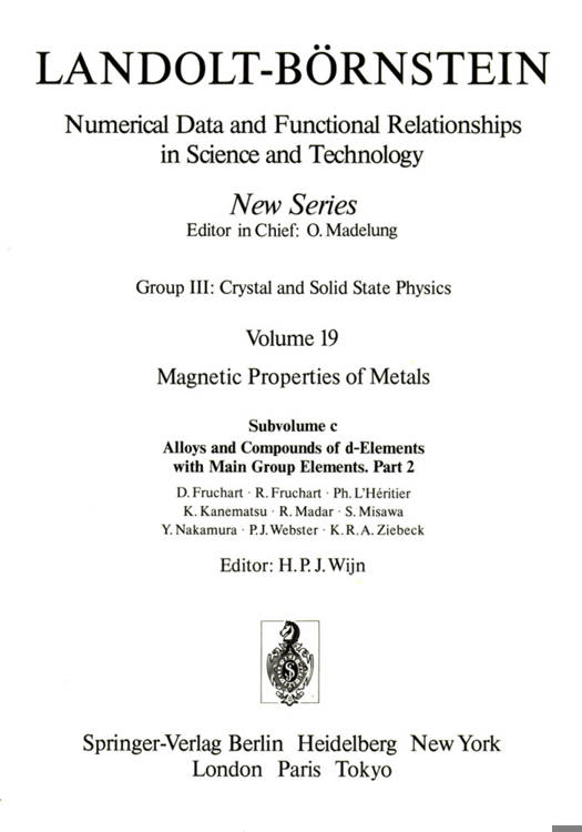 Since 1970 several volumes of the Landolt-Börnstein New Series have appeared which are devoted to, or at least include, the magnetic properties of some special groups of substances. Volume 19 of Group III (Crystal and Solid State Physics) deals with the magnetic properties of metals, alloys and metallic compounds containing at least one transition element. The amount of information available has become so substantial that several subvolumes are needed to cover it all. The first subvolumes deal with the intrinsic magnetic properties, i. e. those magnetic properties which depend only on the chemical composition and the crystal structure. Data on the properties which also depend on the preparation of the samples measured, as for instance, thin films or amorphous alloys and the magnetic alloys used in technical applications, will be compiled in the last subvolumes of the series. The first subvolume, III/19 a, appeared in 1986. It covers the magnetic properties of metals and alloys of the 3d, 4d and 5d transition elements. The second subvolume, III/19 b (1987), covers the magnetic properties of the binary metallic alloys and compounds of 3d transition elements with the elements of group 1B, 2B and 3B of the Periodic System. The present subvolume III/19 c completes the survey of the magnetic data of the metallic compounds of d transition-elements with elements of the main groups of the Periodic System of the elements. The major groups of ternary compounds, i. e. the Heusler alloys and the compounds with perovskite structure, are being treated in separate chapters.