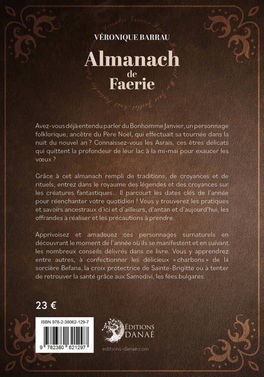 Avez-vous déjà entendu parler du Bonhomme Janvier, un personnage folklorique, ancêtre du Père Noël, qui effectuait sa tournée dans la nuit du nouvel an ? Connaissez-vous les Asraïs, ces êtres délicats qui quittent la profondeur de leur lac à la mi-mai pour exaucer les vœux ? Grâce à cet almanach rempli de traditions, de croyances et de rituels, entrez dans le royaume des légendes et des croyances sur les créatures fantastiques… Il parcourt les dates clés de l'année pour réenchanter votre quotidien ! Vous y trouverez les pratiques et savoirs ancestraux d'ici et d'ailleurs, d'antan et d'aujourd'hui, les offrandes à réaliser et les précautions à prendre. Apprivoisez et amadouez ces personnages surnaturels en découvrant le moment de l'année où ils se manifestent et en suivant les nombreux conseils délivrés dans ce livre. Vous y apprendrez entre autres, à confectionner les délicieux « charbons » de la sorcière Befana, la croix protectrice de Sainte-Brigitte ou à tenter de retrouver la santé grâce aux Samodivi, les fées bulgares.