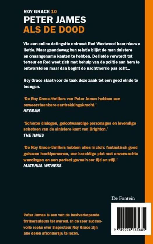 'Als de dood' van Peter James is deel 10 in de thriller-serie rondom inspecteur Roy Grace. Roy Grace figureerde voor het eerst in de hittitel 'Doodsimpel'.Voor de fans van Lee Child, Ian Rankin en Inspector Morse.