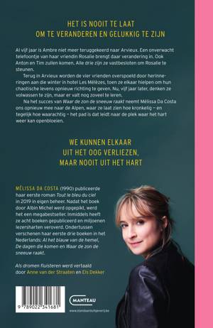 Al vijf jaar is Ambre niet meer teruggekeerd naar Arvieux. Een onverwacht telefoontje van haar vriendin Rosalie brengt daar verandering in. Ook Anton en Tim zullen komen, alle drie bereid om er voor Rosalie te zijn. In Arvieux worden de vier vrienden onmiddellijk overspoeld door herinneringen aan die winter in hotel Les Mélèzes, toen ze dankzij elkaar nieuwe perspectieven en energie vonden om hun chaotische levens weer op te pakken. Nu zijn ze vijf jaar ouder en denken ze volwassen te zijn, maar er valt nog zoveel te leren. In dit boek neemt Mélissa Da Costa ons opnieuw mee naar de Alpen om te laten zien hoe kronkelig – en tegelijk hoe echt – het pad is dat leidt naar de plek waar het hart weer kan openbloeien.