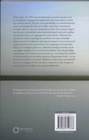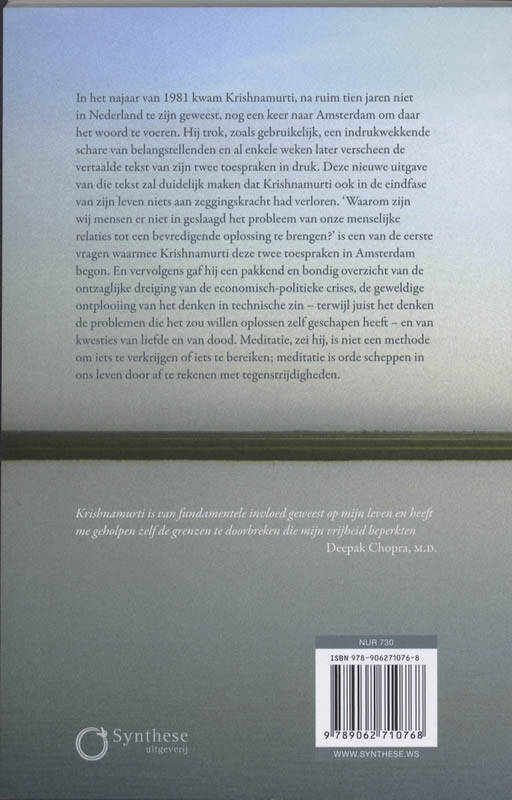 Krishnamurti was een bescheiden man, gebruikte zelden het woordje ik, duidde zichzelf aan als de spreker of als wij, waarmee hij soms de indruk kon wekken dat hij namens een groep sprak, terwijl dat beslist niet het geval was. Hij wilde met zijn toespraken elk van zijn luisteraars persoonlijk aanspreken, hij wilde een gesprek met ze voeren, een gesprek als tussen twee vrienden, Zoals hij het toen in Amsterdam zelf uitdrukte: als twee vrienden die op een mooie dag op een bank in het park zitten te praten over het leven. Maar Krishnamurti was wel een vriend die zijn gesprekspartners onomwonden de waarheid zei. Niet ten onrechte werd hij wel aangeduid als de belangrijkste beeldenstormer van de twintigste eeuw. De beelden die hij bestormde zijn de naar zijn inzicht verstarde denkbeelden en meningen waarmee de mens zich heeft verschanst in een burcht van beperkende regels en systemen, die er vooral op gericht zijn het eigenbelang veilig te stellen.