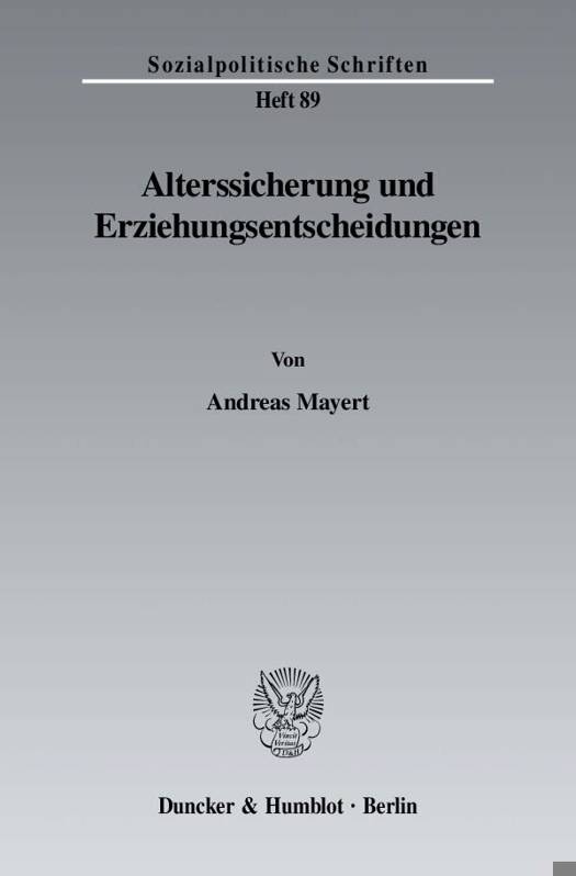 Andreas Mayert setzt an dieser Argumentation an und denkt sie konsequent weiter. Drei entscheidende Fragen sollen dabei beantwortet werden: Lässt sich die Berücksichtigung individueller Erziehungsleistungen in öffentlichen Alterssicherungssystemen ökonomisch begründen? Falls ja, welche Erziehungsleistungen sollten dann berücksichtigt werden? Und schließlich: Ist es möglich, ein Modell zu entwickeln, das zusätzlich zur Beantwortung der ersten beiden Fragen erklärt, warum Staaten überhaupt in Alterssicherungsentscheidungen eingreifen sollten?