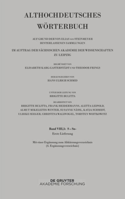 Das in zehn Bänden geplante Althochdeutsche Wörterbuch erscheint seit 1952 in Lieferungen bei der Sächsischen Akademie der Wissenschaften zu Leipzig und wird seit der Lieferung V/15 von Hans Ulrich Schmid herausgegeben. Band VIII (mit s- anlautende Stichwörter) enthält die materialreichste Wortstrecke und wird deshalb in zwei Teilen erscheinen.