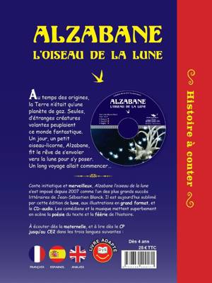Livre-CD avec trois versions incluses - français, espagnol et anglais- dans le livre et dans le CD. Ce livre est d'abord paru en 2007, dans une collection classique de petits romans illustrés, Histoires d'en rêver. Cette nouvelle édition "de luxe", propose une mise en page plus aérée, avec une police adaptée aux lecteurs en difficultés. Initialement destiné aux lecteurs de plus de 8 ans, ce livre dans cette édition est idéal dans le cadre de l'apprentissage de la lecture (grande section-CP) et des langues, jusqu'au CE2. Le texte, poétique, raconte l'odyssée initiatique d'un oiseau de temps très lointains, vers la lune. Une allégorie sur le sens de la vie, le destin, et tous ceux qui tentent un jour de décrocher leur lune. Le texte est accompagné de 25 illustrations grand format de Fernando Falcone.