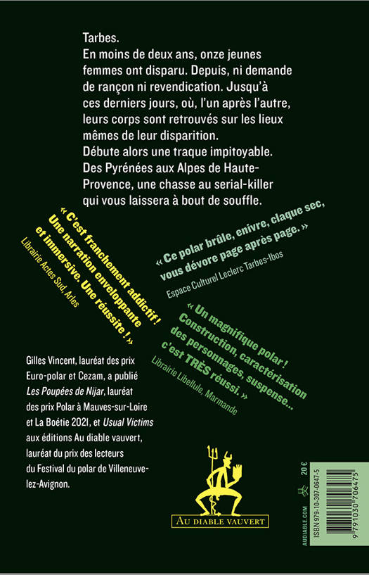 Débute alors une traque impitoyable. Des Pyrénées aux Alpes de Haute-Provence, une chasse au serial-killer qui vous laissera à bout de souffle.