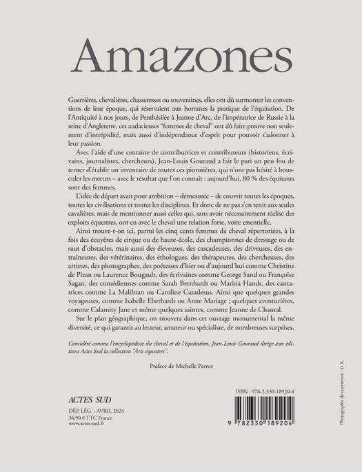 Guerrières, chevalières, chasseresses ou souveraines, elles ont dû surmonter les conventions de leur époque, qui réservaient aux hommes la pratique de l'équitation. De l'Antiquité à nos jours, de Penthésilée à Jeanne d'Arc, de l'impératrice de Russie à la reine d'Angleterre, ces audacieuses "femmes de cheval" ont dû faire preuve non seulement d'intrépidité, mais aussi d'indépendance d'esprit pour pouvoir s'adonner à leur passion. Avec l'aide d'une centaine de contributrices et contributeurs (historiens, écrivains, journalistes, chercheurs), Jean-Louis Gouraud a fait le pari un peu fou de tenter d'établir un inventaire de toutes ces pionnières, qui n'ont pas hésité à bousculer les moeurs - avec le résultat que l'on connaît : aujourd'hui, 80 % des équitants sont des femmes. L'idée de départ avait pour ambition - démesurée - de couvrir toutes les époques, toutes les civilisations et toutes les disciplines. Et donc de ne pas s'en tenir aux seules cavalières, mais de mentionner aussi celles qui, sans avoir nécessairement réalisé des exploits équestres, ont eu avec le cheval une relation forte, voire essentielle. Ainsi trouve-t-on ici, parmi les cinq cents femmes de cheval répertoriées, à la fois des écuyères de cirque ou de haute-école, des championnes de dressage ou de saut d'obstacles, mais aussi des éleveuses, des cascadeuses, des driveuses, des entraîneures, des vétérinaires, des éthologues, des thérapeutes, des chercheuses, des artistes, des photographes, des poétesses d'hier ou d'aujourd'hui comme Christine de Pizan ou Laurence Bougault, des écrivaines comme George Sand ou Françoise Sagan, des comédiennes comme Sarah Bernhardt ou Marina Hands, des cantatrices comme La Malibran ou Caroline Casadesus. Ainsi que quelques grandes voyageuses, comme Isabelle Eberhardt ou Anne Mariage ; quelques aventurières, comme Calamity Jane et même quelques saintes, comme Jeanne de Chantal. Sur le plan géographique, on trouvera dans cet ouvrage monumental la même diversité, ce qui garantit au lecteur, amateur ou spécialiste, de nombreuses surprises.