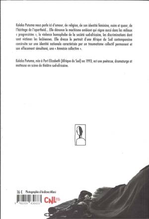 L’Afrique du Sud contemporaine est construite sur une identité nationale qui se caractérise par un traumatisme collectif permanent et son effacement simultané, une «Amnésie collective». Les thèmes qu’aborde Koleka Ptuma sont l’amour, la religion, les identités féminine, noire et queer, l’héritage de l‘apartheid... Elle pointe et dénonce le machisme qui règne jusque dans les milieux les plus «progressistes», la violence homophobe de la société sud-africaine, le manque de visibilité et les discriminations dont sont victimes les lesbiennes, entre autres dans son poème intitulé No Easter Sunday for Queers, (Pas de dimanche de Pâques pour les queers) qu’elle a adapté au théâtre. Ses poèmes, qui demandent avant tout «JUSTICE !», ont inspiré et accompagné de nombreuses manifestations et mouvements féministes et étudiants.<br /> son livre pose la question du genre en littérature et traduire Collective Amnesia implique de recourir au langage non genré, ce qui en français suppose des choix - adjectifs, participes passés, pronoms personnels - tout en veillant à ne pas gêner la lecture ce qui a été parfaitement réussi par le traducteur Pierre-Marie Finkelstein.