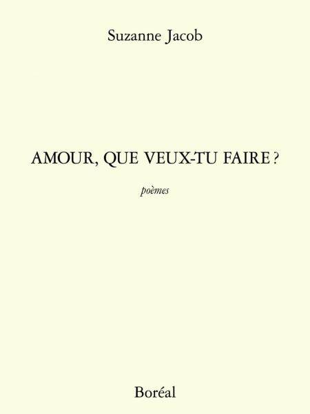 Doit-on rester la statue qu'on devient quand on nous lance à bout de bras ? Doit-on rester comme on est tombé debout, comme on est tombé couché, doit-on rester pareil comme avoir été lancé nous a mis et attendre la remise des prix ? Amour, que veux-tu faire ? La voix et le mot, la parole et le sens, tout s'accorde dans la poésie de Suzanne Jacob pour nous faire vivre une singulière expérience de lecture.