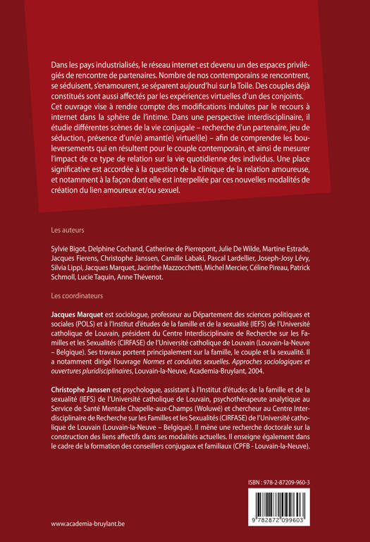 Dans les pays industrialisés, le réseau Internet est devenu un des espaces privilégiés de rencontre de partenaires. Cet ouvrage vise à rendre compte des modifications induites par le recours à Internet dans la sphère de l'intime. Dans une perspective inte