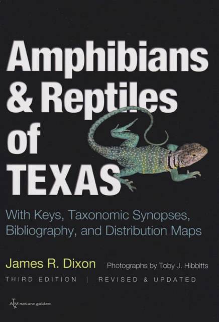 This third edition of James R. Dixon's Amphibians and Reptiles of Texas: With Keys, Taxonomic Synopses, Bibliography, and Distribution Maps, completely redesigned throughout with color photographs, revised taxonomic keys, and updated species descriptions, covers more than two hundred species of amphibians and reptiles. As in the previous editions, the book includes an extensive listing of the literature on Texas amphibians and reptiles that goes back to the historic writings of Berlandier, in the early nineteenth century, and is updated to reflect the most recent research.?Comprehensive distribution maps, updated references, and an exhaustive bibliography round out this latest edition of what has come to be widely recognized as the standard scientific guide and reference for professional, academic, and amateur naturalists interested in the herpatofauna of Texas.