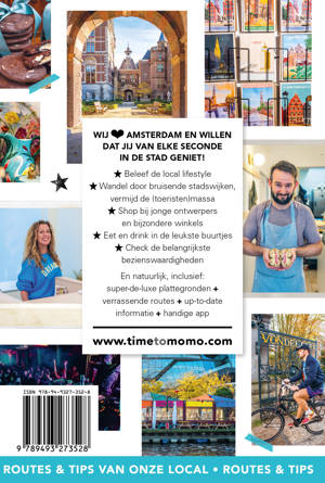 Stap je hotel uit en loop regelrecht naar de leukste wijken van Amsterdam. Met 6 verrassende routes door de verschillende wijken kun je de stad in je eigen tempo ontdekken én de lokale lifestyle beleven. Bij Time to Momo slaan we de dertien-in-een-dozijn-winkelstraten over en wandel je, terwijl je onderweg een bezienswaardigheid meepikt, naar de tofste winkels, vintage markten, creatieve hotspots en fijne parken waar de locals zelf graag komen. Inclusief alle belangrijke bezienswaardigheden, leuke top 10-lijstjes, meer dan 250 adressen om te eten, drinken en shoppen, handige uitneembare stadsplattegrond én gratis kaart-app. Time to Momo is met meer dan 200.000 verkochte gidsen per jaar de bestverkochte stedengids van Nederland en België. We zijn al meer dan 20 jaar een inspiratiebron voor reizigers. Check al onze stedentripbestemmingen, de laatste nieuwe tips en hotelinspiratie op www.timetomomo.com.