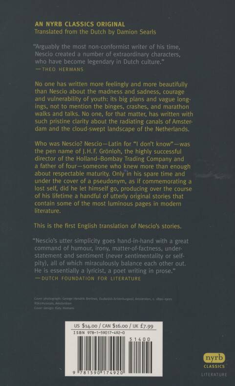 Who was Nescio? Nescio--Latin for "I don't know"--was the pen name of J.H.F. Grönloh, the highly successful director of the Holland-Bombay Trading Company and a father of four--someone who knew more than enough about respectable maturity. Only in his spare time and under the cover of a pseudonym, as if commemorating a lost self, did he let himself go, producing over the course of his lifetime a handful of utterly original stories that contain some of the most luminous pages in modern literature.
