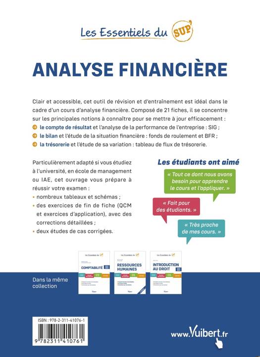 Ce livre, organisé en vingt-et-une fiches thématiques, constitue un outil parfait pour réviser et s'entraîner sur l'analyse financière. Clair, pédagogique et progressif, il permet d'acquérir toutes les notions fondamentales de la discipline : l’étude de la performance, le diagnostic de la situation financière et l’analyse de la trésorerie. Chaque fiche comprend :
