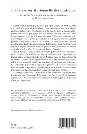 L'analyse institutionnelle théorisée par René Lourau, en 1969, s'est centrée sur les pratiques sociales, et particulièrement sur les pratiques professionnelles. Le projet ici est d'approfondir la réflexion sur l'analyse des implications, c'est-à-dire des relations (libidinales, organisationnelles et idéologiques) entre les sujets et les institutions, en les resituant systématiquement dans leurs contextes institutionnels, donc politiques.