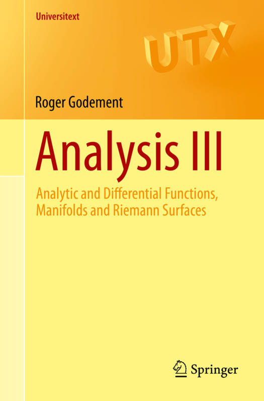 Volume III sets out classical Cauchy theory. It is much more geared towards its innumerable applications than towards a more or less complete theory of analytic functions. Cauchy-type curvilinear integrals are then shown to generalize to any number of real variables (differential forms, Stokes-type formulas). The fundamentals of the theory of manifolds are then presented, mainly to provide the reader with a "canonical'' language and with some important theorems (change of variables in integration, differential equations). A final chapter shows how these theorems can be used to construct the compact Riemann surface of an algebraic function, a subject that is rarely addressed in the general literature though it only requires elementary techniques.