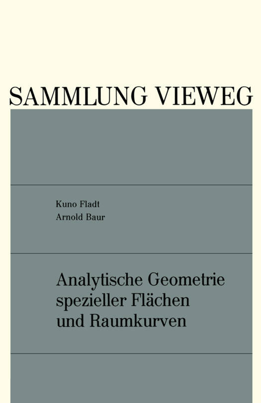 Die Freude an der Gestalt ist es, welche den Geometer macht. Alfred Clebsch in "Zum Gedächtnis an Julius Plücker". Dieses Buch ist in jeder Beziehung ein Wagnis, aus drei Hauptgründen: 1. wächst beim Übergang von zwei zu drei Dimensionen, von den ebenen Kurven zu den Flächen und zu den Raumkurven, die Zahl der zu behandelnden Gebilde sofort ins Uferlose; 2. übersteigen die mathematischen Mittel der Stoffbehandlung viel früher und in viel größerem Umfange den elementaren mathematischen Ausbildungsgrad 1): 3. setzt der zu behandelnde Stoff, auch wenn er "elementar" ist, doch sehr viel an "allge- meinen" geometrischen Kenntnissen voraus, die (im Gegensatz zum Kurvenbuch 2)) dem Leser nicht gegenwärtig sind und auch gar nicht gegenwärtig sein können. Der Schwierigkeiten 2. und 3. suchten wir auf folgende Weise wenigstens einigermaßen Herr zu werden: Mit der letzten, 3., so, daß wir drei Kapitel "Aus der Koordinaten-, der alge- braischen und der Differentialgeometrie" vorausschickten, in denen wir auf möglichst elementare Weise den Stoff darzulegen versuchten, der die mathematischen Kenntnisse des Gymnasiums überschreitet bzw. der in den Anfangervorlesungen zwar behandelt wird, dort aber nicht zusammenhängend, wie es fur uns wichtig ist, sondern an vielen Stellen zerstreut, weil mit vielem anderen Stoff vermengt.