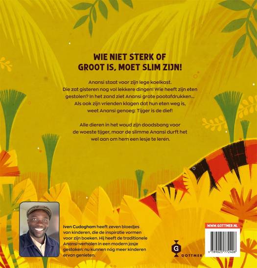 Als Anansi de spin zijn leeggeplunderde koelkast en een grote pootafdruk voor zijn deur ziet, weet hij al hoe laat het is: de gulzige Tijger is weer langs geweest en heeft zich tegoed gedaan aan al het lekkere eten van Anansi en zijn woudvrienden. Tijd om Tijger een lesje te leren! Alle dieren bibberen van angst voor Tijger, maar Anansi niet. Die schudt zo een sluw plannetje uit zijn mouw om Tijger op zijn plek te zetten.