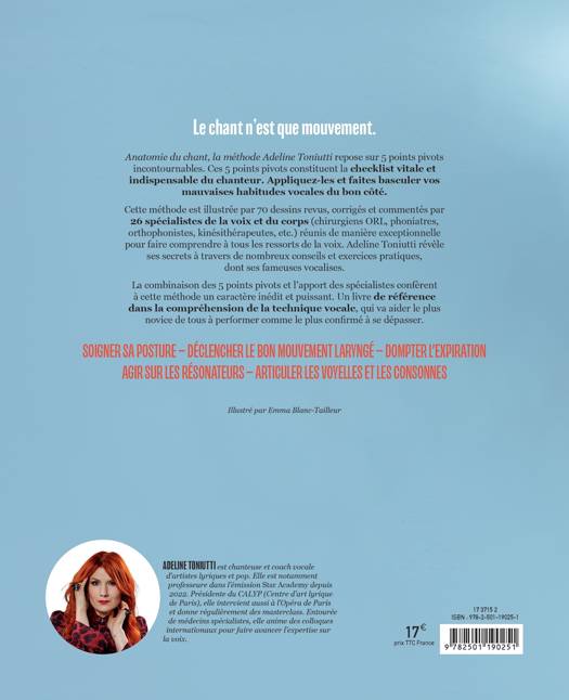 Cette méthode est illustrée par 70 dessins revus, corrigés et commentés par 26 spécialistes de la voix et du corps (chirurgiens ORL, phoniatres, orthophonistes, kinésithérapeutes, etc.) réunis de manière exceptionnelle pour faire comprendre à tous les ressorts de la voix. Adeline Toniutti révèle ses secrets à travers de nombreux conseils et exercices pratiques, dont ses fameuses vocalises.