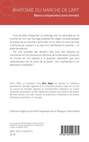 Fruit du désir d'apporter un éclairage clair et rationalisé sur le marché de l'art, cet ouvrage présente les règles, caractéristiques et enjeux de ce marché si particulier. Et ce, dans un souci de mise à distance par rapport à ce que l'art représente en premier: un objet de passion. Par une synthèse des devants mais aussi des dessous du marché de l'art et une lecture attentive de la littérature, Anatomie du marché de l'art répond à la question essentielle que tout collectionneur est en droit de se poser: l'art représente-t-il un placement profitable ?