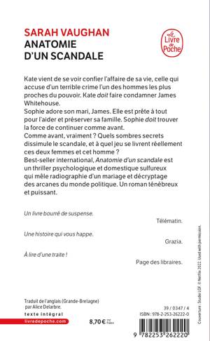 Best-seller international, Anatomie d'un scandale est un thriller psychologique et domestique sulfureux qui mêle radiographie d'un mariage et décryptage des arcanes du monde politique. Un roman ténébreux et puissant.