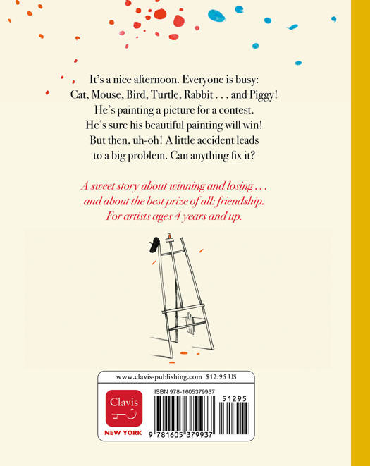 It's a nice afternoon. Everyone is busy: Cat, Mouse, Bird, Turtle, Rabbit . . . and Piggy! He's painting a picture for a contest. He's sure his beautiful painting will win! But then, uh-oh! A little accident leads to a big problem. Can anything fix it?